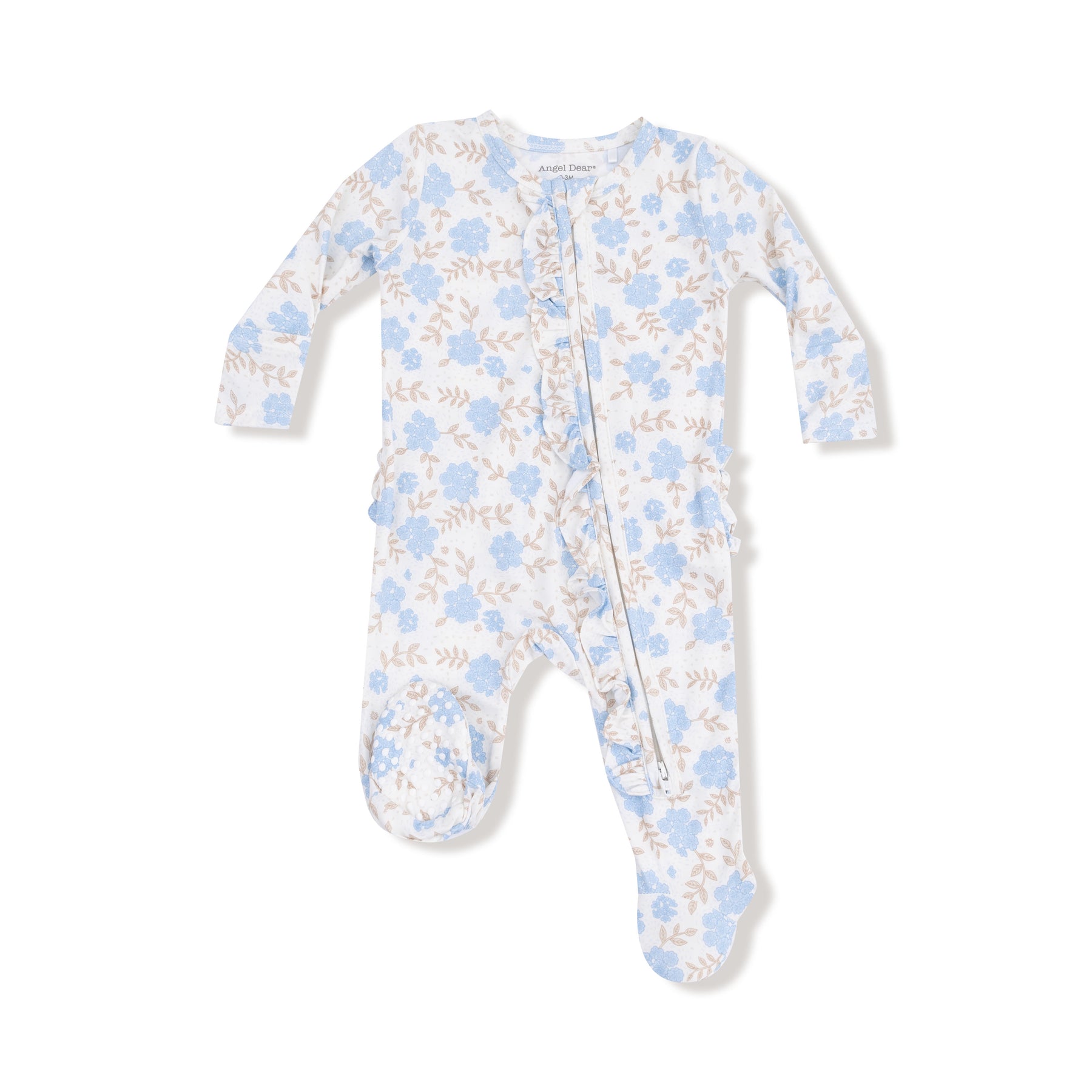 2 Way Ruffle Zipper Footie | Baby Blue Floral