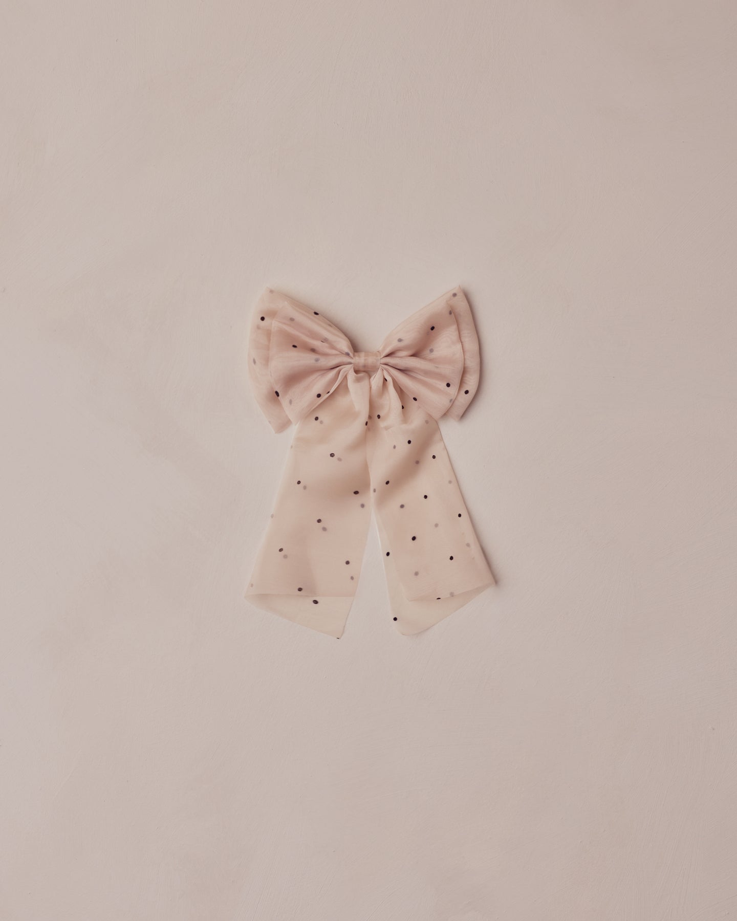 A gorgeous bow perched on a rose gold alligator clip for effortless wear and all-day hold.