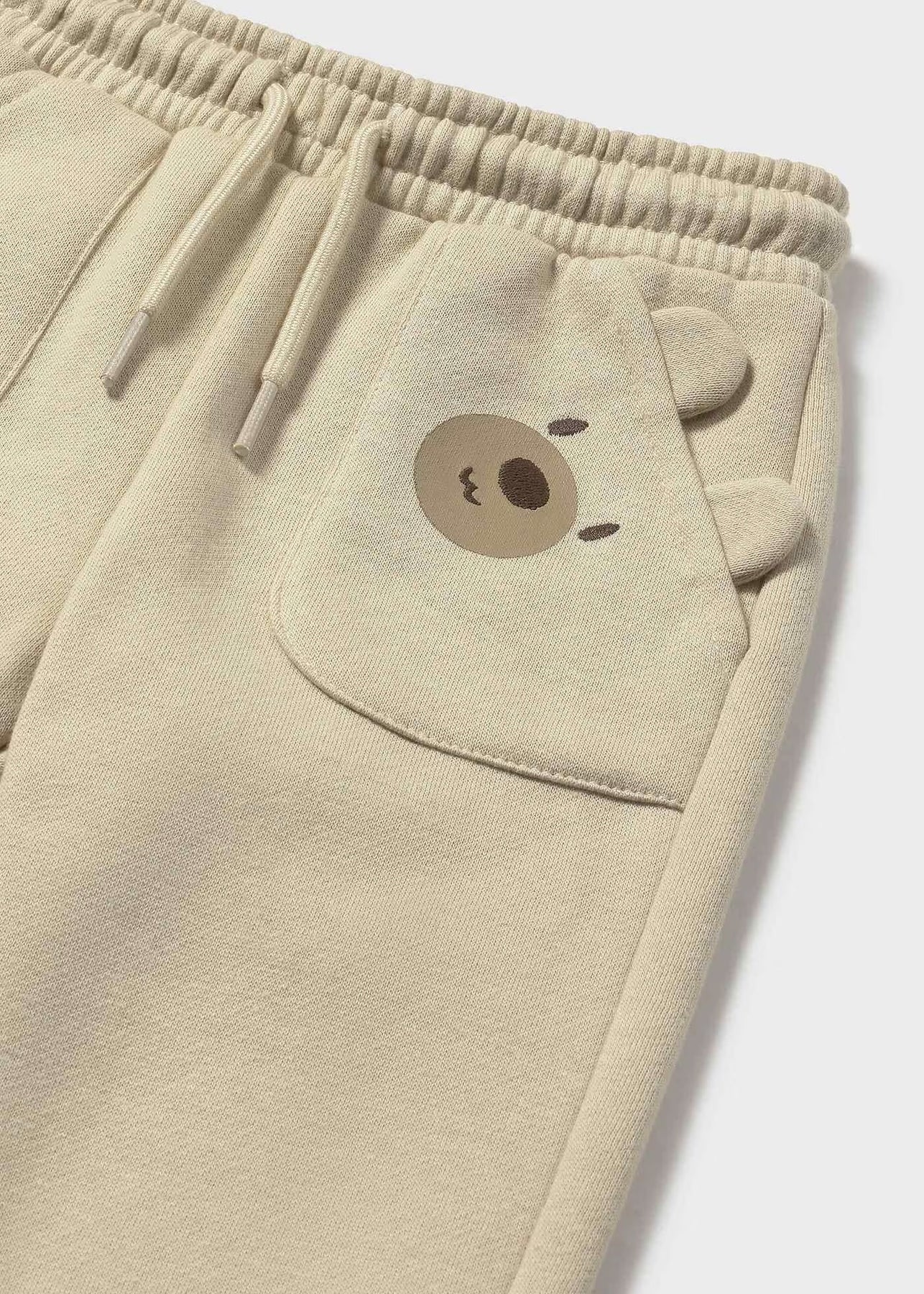 Pants for baby with maximum comfort. Elasticated waistband with adjustable drawstring. Knee pads reinforced on the inside to prevent damage in the area and offer greater resistance and durability. Elasticated hem for a better fit. Functional front pockets. Functional back pocket. Decorative elements: appliqued ears motifs, embroidery, Print.